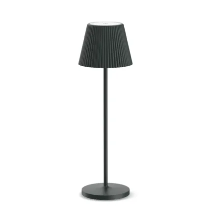 Elegant og solid lampe med smal og riflet skjerm. Oppladbar med USB kabel (kan kobles med strømplugg). Opptil 20 timers