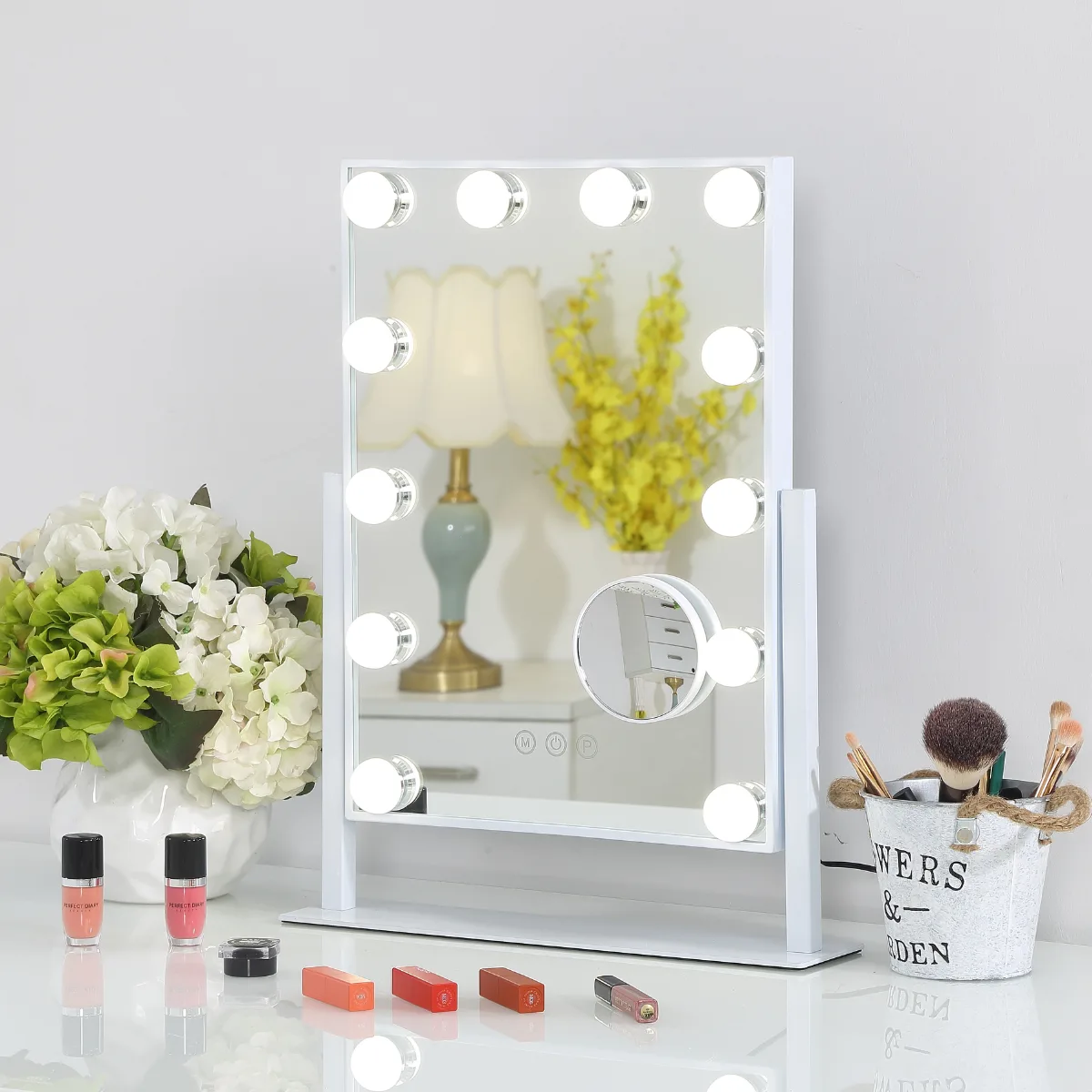 Bestselger! Praktisk og lekkert sminkespeil med justerbart lys i både styrke og tone. 12 G35 LED pærer. Touch panel. Justerbar vinkel. Fåes i både sort, hvit og sølv og rosegull. Størrelse 30x41cm