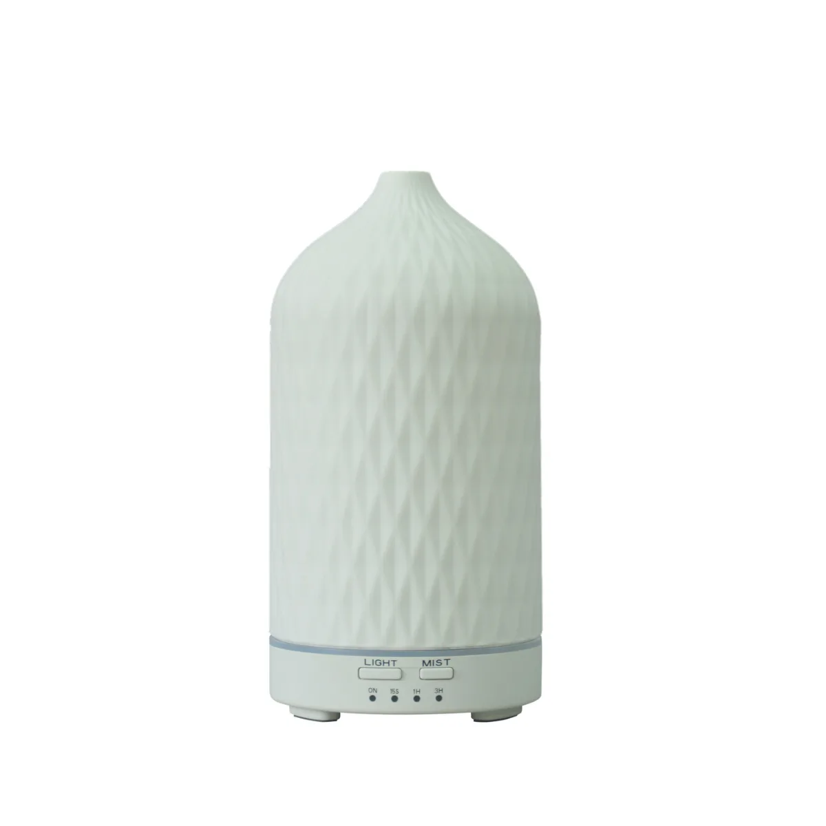 Aroma diffuseren gir deg muligheten til å fylle rommet med beroligende duftoljer, samtidig som den tilfører et snev av eleganse med sitt diamantmønster.